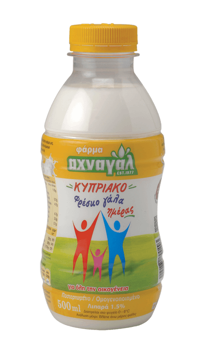 Achnagal, Fresh daily light Milk, 1.5% fat, available in 1lt, 1,5lt, 2lt plastic bottles. Nutritious and delicious light fresh milk that encompasses all the necessary trace elements, minerals and vitamins.